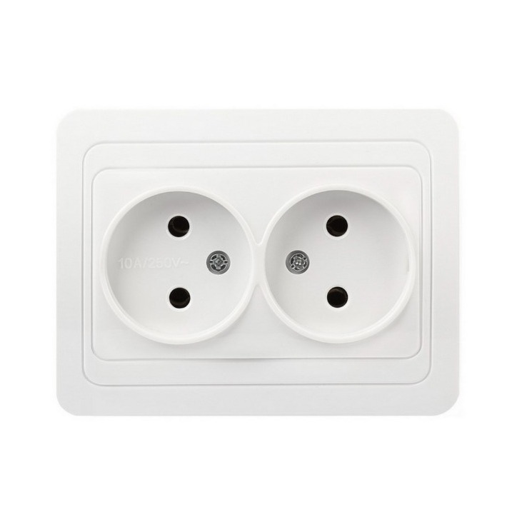 Розетка двойная одноместная без заземления 10А белая, керамика "Марс" (SBE-02w-10-S2-N-c)
