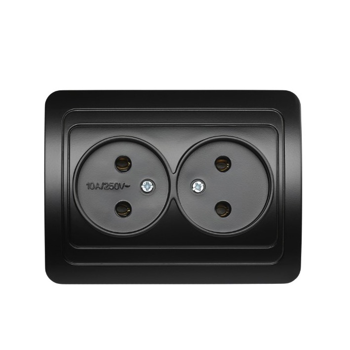 Розетка двойная одноместная без заземления 10А черная, "Марс" (SBE-02b-10-S2-N-c)