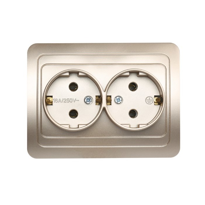 Розетка двойная одноместная с заземлением 16А шампань, "Марс" (SBE-02c-16-S2-Z-c)