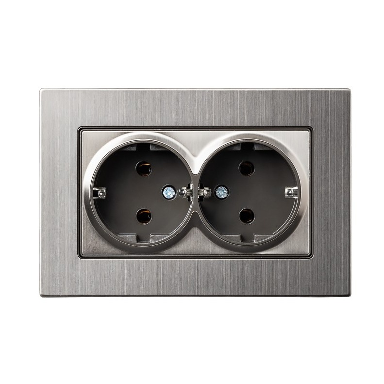 Розетка двойная с заземлением серый никель с рамкой "Нептун" (SBE-06gn-16-S2-Z)
