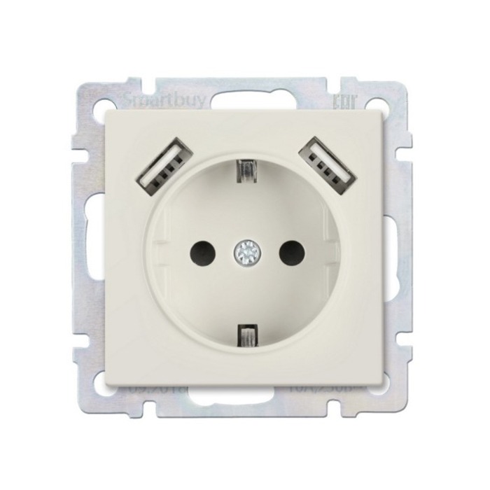 Розетка с заземлением и 2-мя USB 16А бежевая "Нептун" (SBE-05i-16-S1-USB)