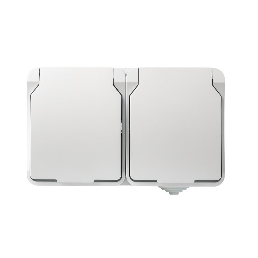Розетка 2-местная с заземлением 16А с крышкой, IP54, белая, "Сатурн" (SBE-04g-16-S2-Z)