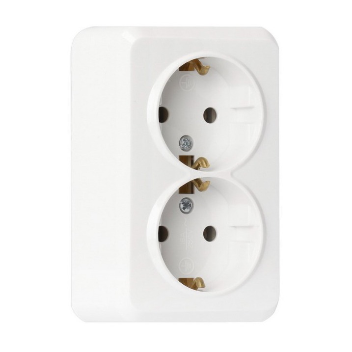 Розетка 2-местная 16А с заземлением белая "Юпитер" (SBE-03w-16-S2-Z)