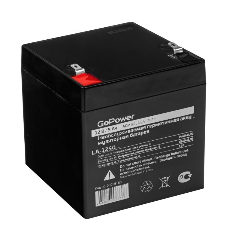 Аккумулятор свинцово-кислотный 12V, 5,0 Ah LA-1250 "GoPower"