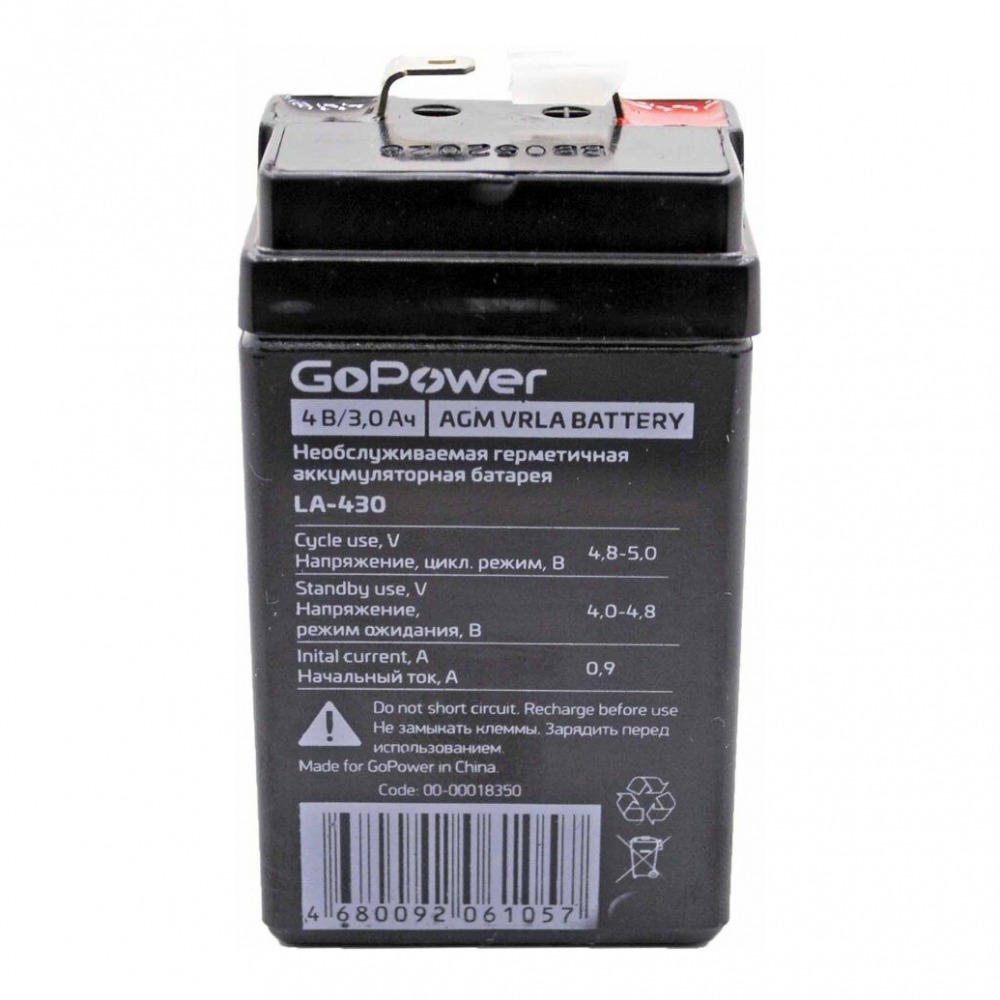Аккумулятор свинцово-кислотный 4V, 3,0 Ah LA-430/101 "GoPower"