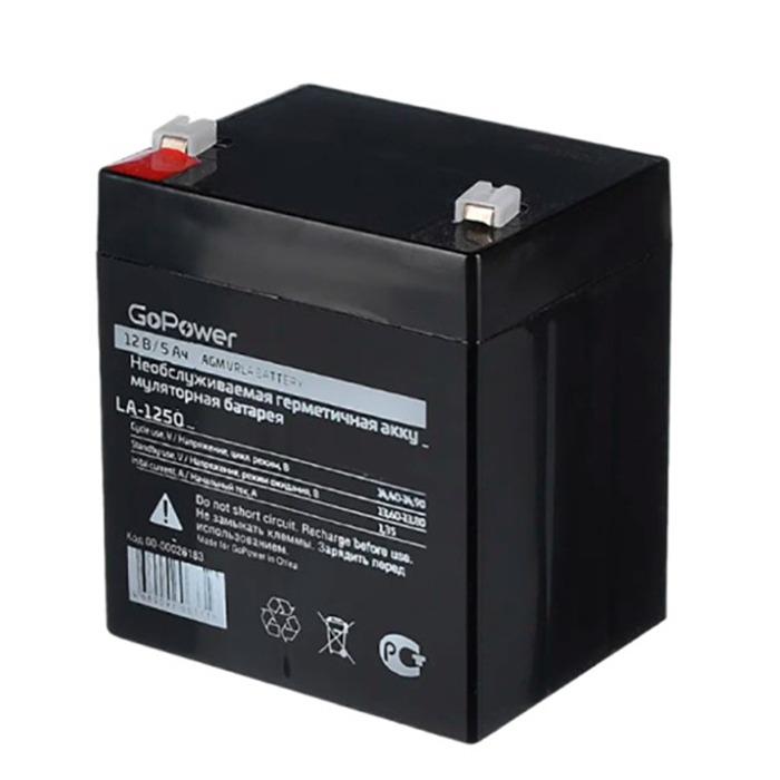 Аккумулятор свинцово-кислотный GoPower LA-1250 12V 5Ah клеммы T2/ F2 (1/10)