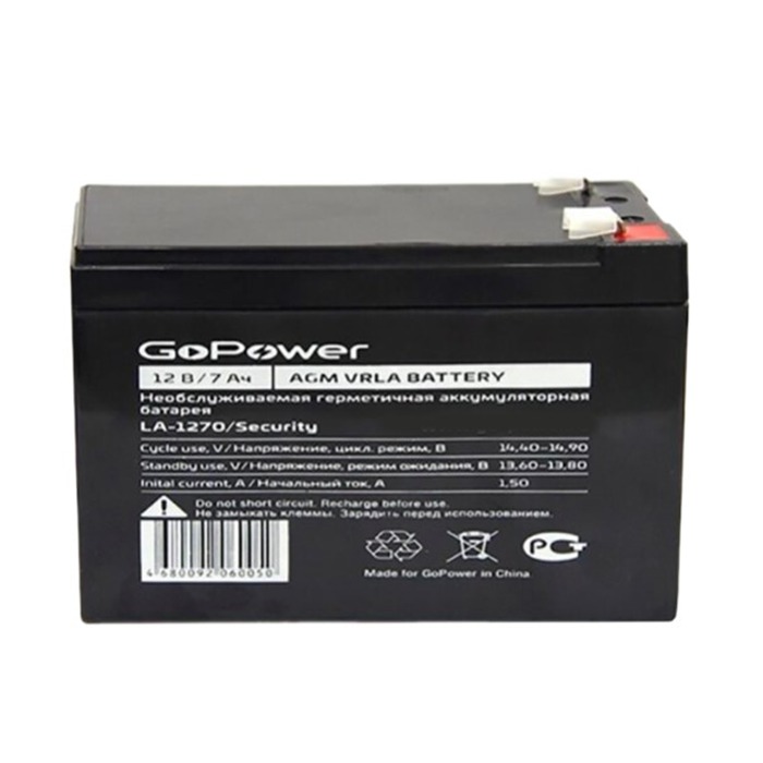 Аккумулятор свинцово-кислотный GoPower LA-1270/security 12V 7Ah клеммы T2/ F2 в картонной упаковке