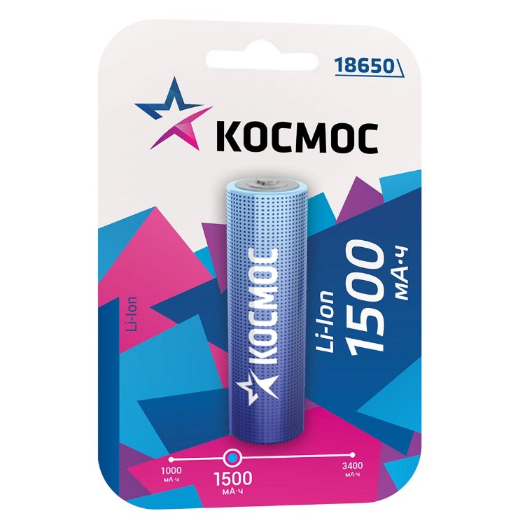 Аккумулятор КОСМОС 18650 1500mAh (1бл) без защиты (1/10/100)