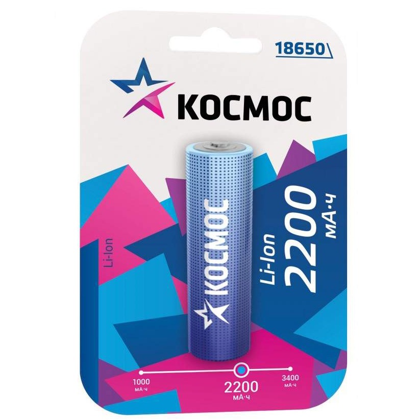 Аккумулятор 18650 Li-on 2200mAh, 3,7V без защиты "Космос" BL-1
