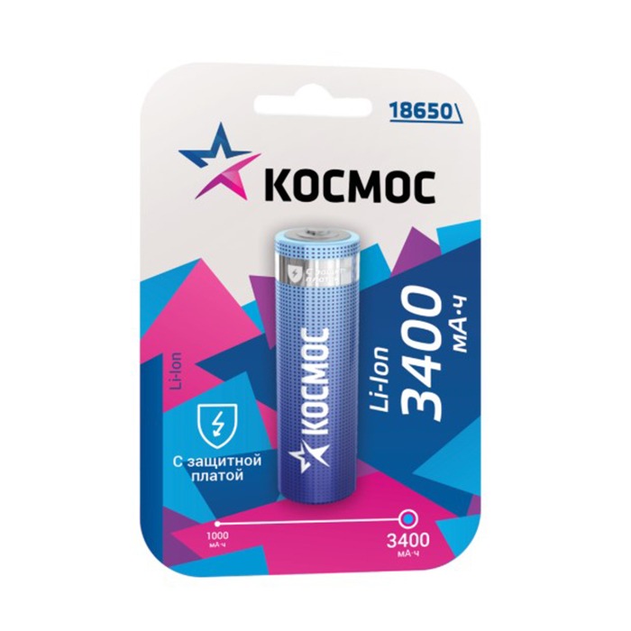 Аккумулятор КОСМОС 18650 3400mAh (1бл) с защитой (1/10/100)