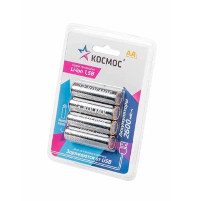 Аккумулятор КОСМОС Li-ion AA, R6 2600 mWh (4/12/576)