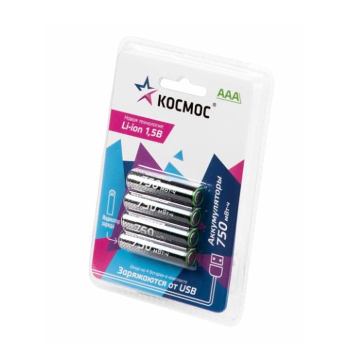 Аккумулятор КОСМОС Li-ion AAA, R03 750 mWh (4/12/576)
