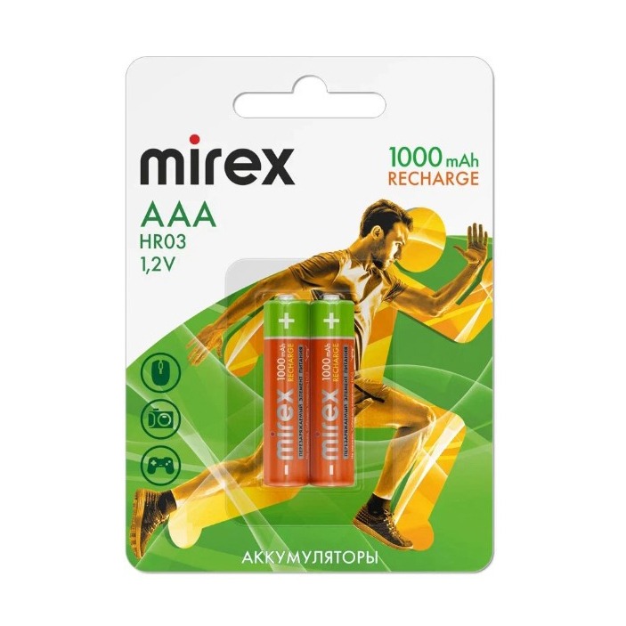 Аккумулятор Ni-MH Mirex HR03 / AAA 1000mAh 1,2V 2 шт (2/20/100), ecopack