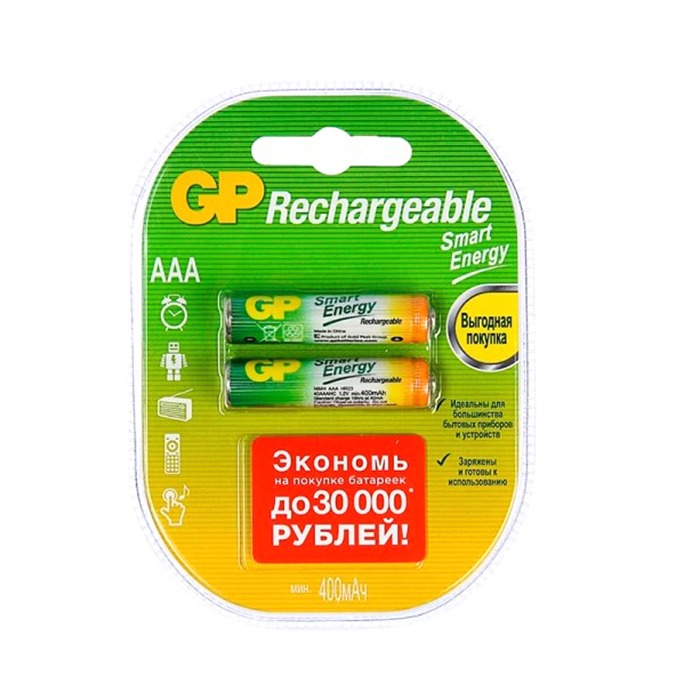 Аккумулятор бытовой GP HR03 AAA BL2 NI-MH 400mAh в пластиковой упаковке (2/20/200)