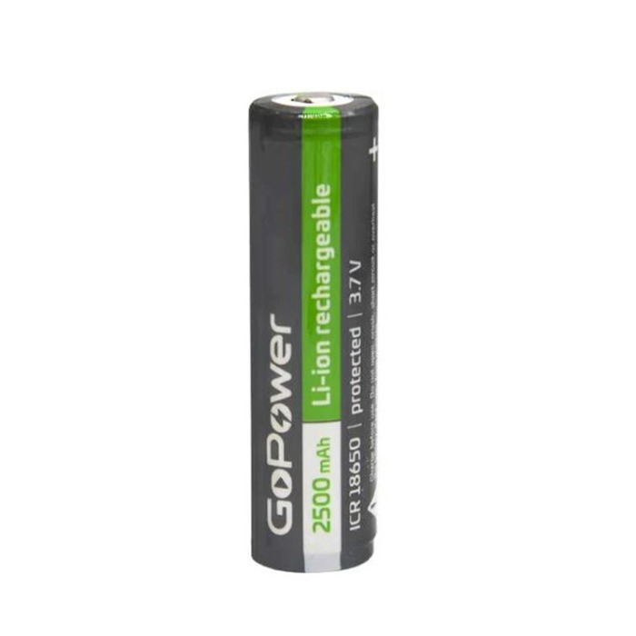 Аккумулятор INR18650 Li-on 2500mAh, 3,7V 30A высокотоковый, без защиты с плоским контактом "GoPower"