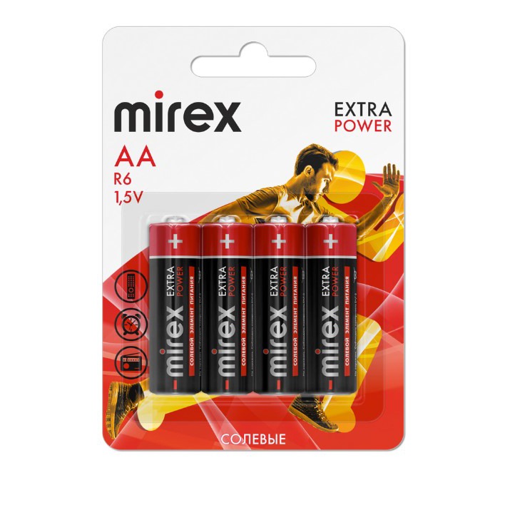 Элемент питания Mirex R6 / AA 1,5V 4 шт (4/48/480), ecopack