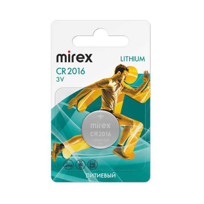 Элемент питания Mirex CR2016 3V 1 шт (1/60/360), ecopack