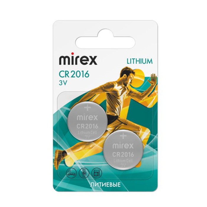 Элемент питания Mirex CR2016 3V 2 шт (2/40/480), ecopack