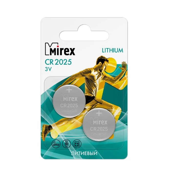 Элемент питания Mirex CR2025 3V 2 шт (2/40/480), ecopack
