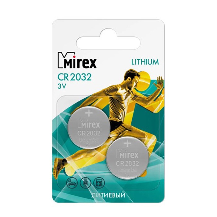 Элемент питания Mirex CR2032 3V 2 шт (2/40/480), ecopack