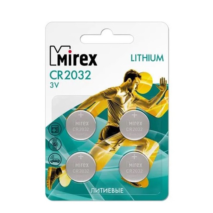 Элемент питания Mirex CR2032 3V 4 шт (4/216/648), ecopack