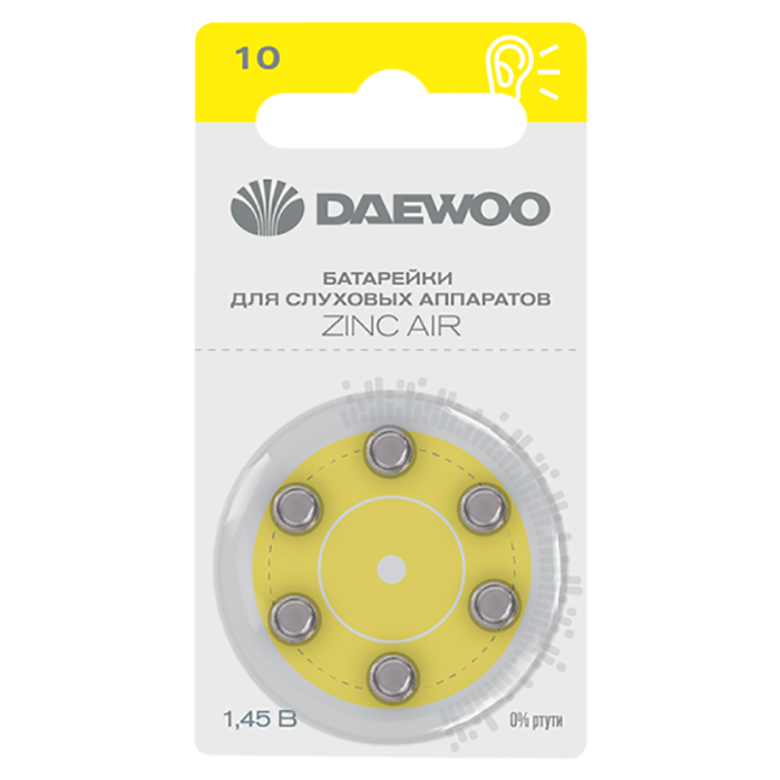Батарейка Daewoo ZA10 BL6 Zinc Air 1.45V (6/60/600/3000)