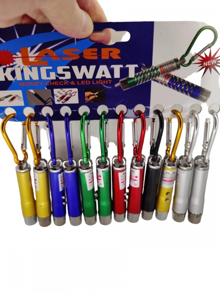 Брелок фонарик + лазер 501 (IMR9-2), с карабином, цветной на блистере 12 шт