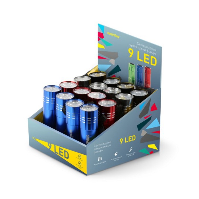 Фонарь SMARTBUY SBF-103-B Светодиодный, алюминиевый, 9 LED, 3хААА, черный (шоу-бокс 24шт) (1/240)