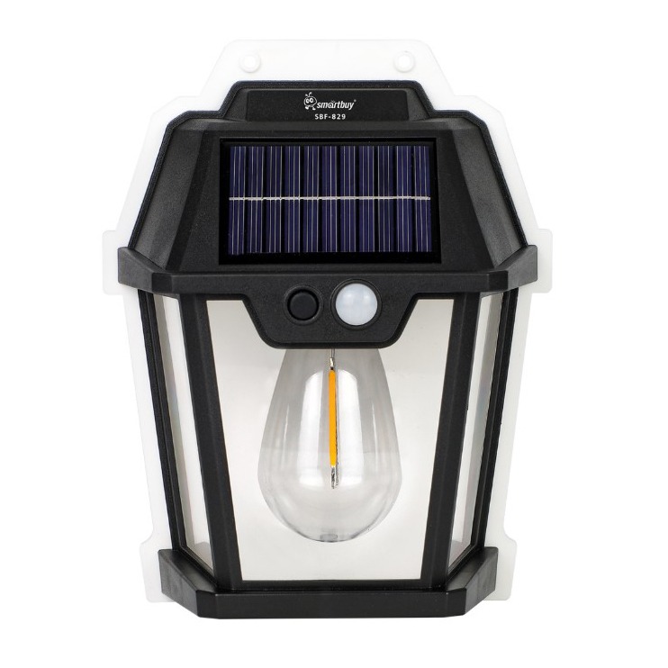 Фонарь уличный декоративный, солнечные панели, 1 филамент LED лампа "ретро", датчик, Smartbuy