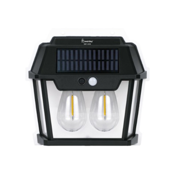 Фонарь уличный декоративный, солнечные панели, 2 филамент LED лампы "ретро", датчик, Smartbuy