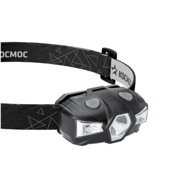 Фонарь налобный Космос 517B 2WLED+кр.свет от батареек 1хАА IP54 5 режимов черный (1/30/240)