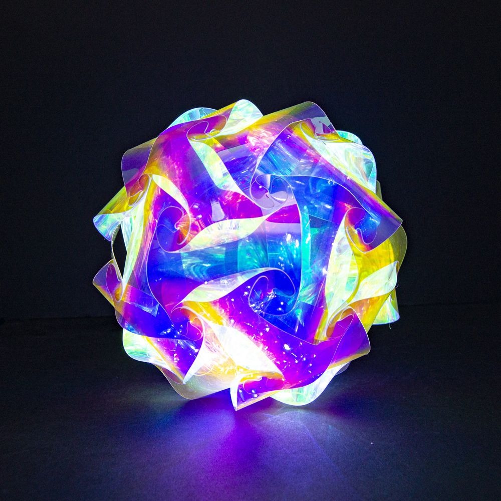 Готовая модель будет светиться, благодаря светодиодной гирлянде в комплекте. Ее нужно будет разместить внутри шарика, и Вы получите светящуюся фигурку для своего дома.