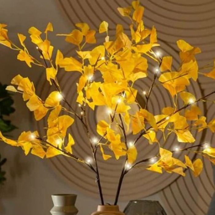 Гирлянда Космос Ветви Гинкго имитация 32LED 90см 6ч таймер 2шт. белый теплый (1/12)