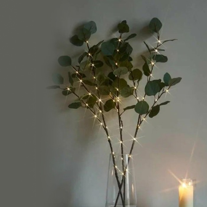Гирлянда Космос Ветви эвкалипта имитация 32LED 62см 6ч таймер 3 шт. белый теплый (1/18)