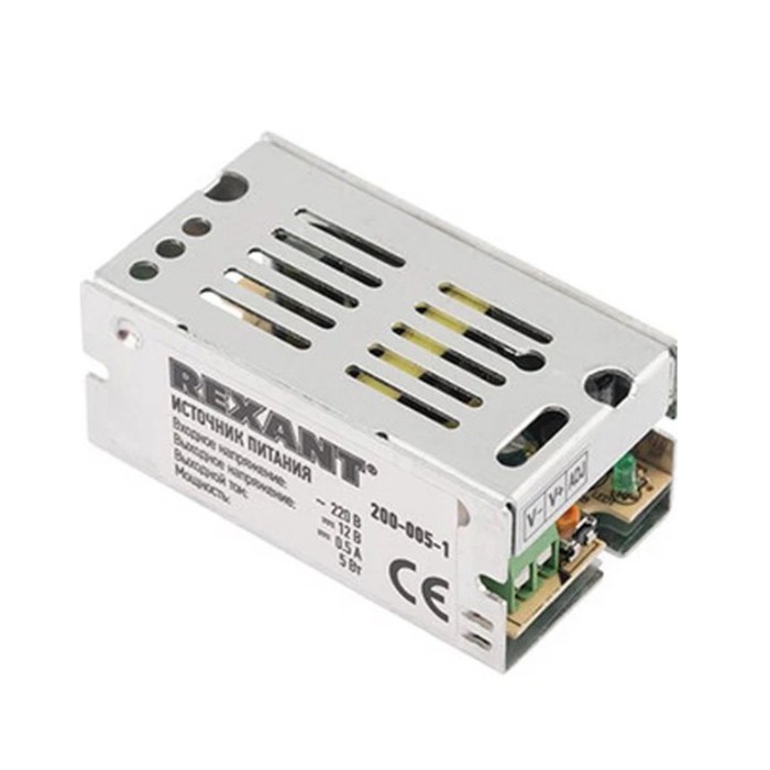 Источник питания 12В, 0,5А 5Вт, с разъёмами под винт, IP23 "Rexant"
