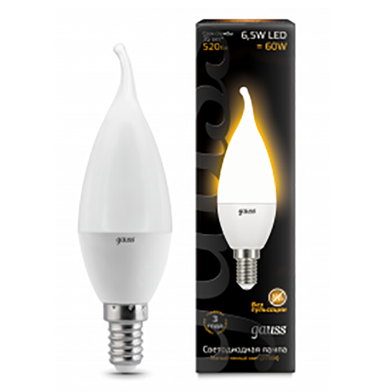 Лампа светодиодная GAUSS Свеча на ветру 6.5W 520lm 3000K E14 1/10/50