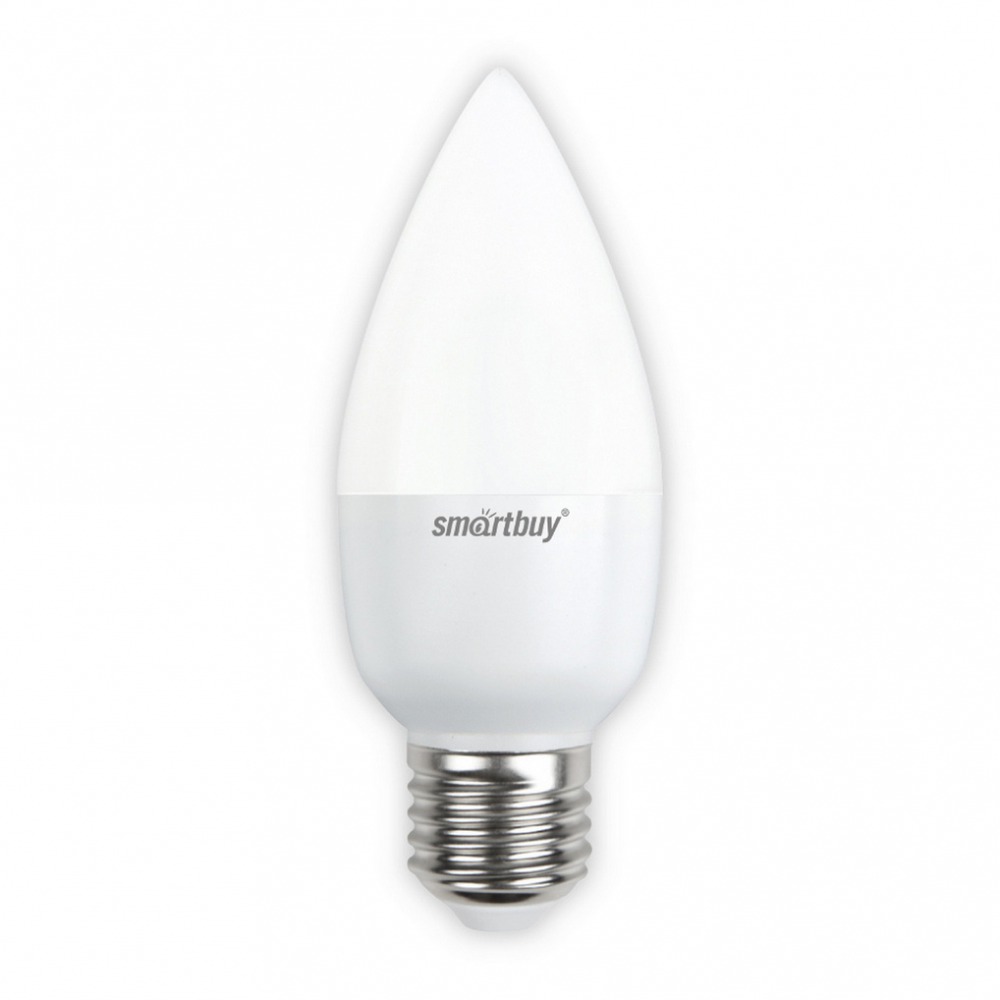Лампа светодиодная SMARTBUY C37 7Вт 220V 6000K E27 (свеча, холодный дневной свет) (10/100)