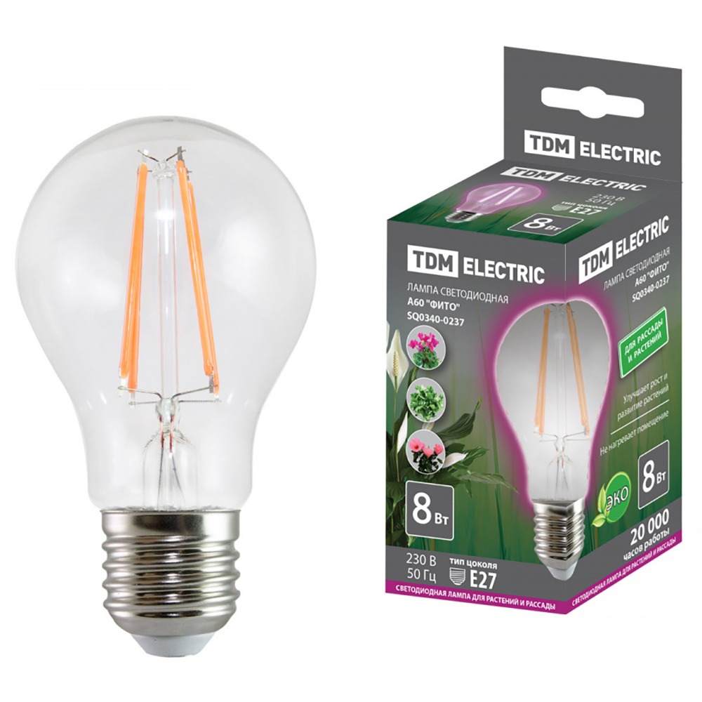 Лампа светодиодная TDM A60-8 Вт-230 В-E27-CL "ФИТО" 60*108 мм, фито спектр (1/100)