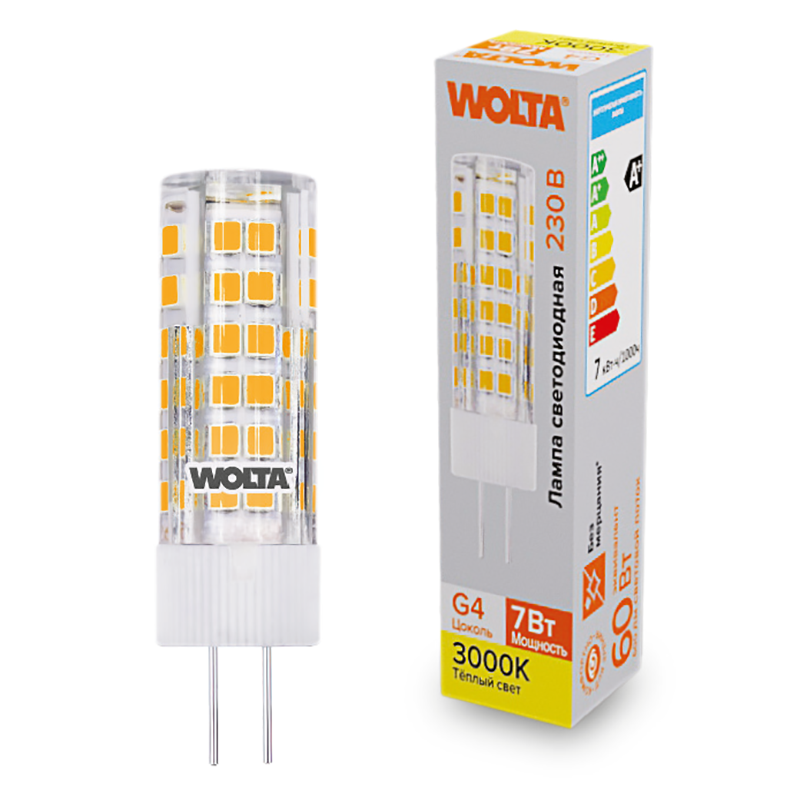Лампа светодиодная WOLTA G4 (керамика) JC 7Вт 600лм 3000K 220V 1/10/100/1000