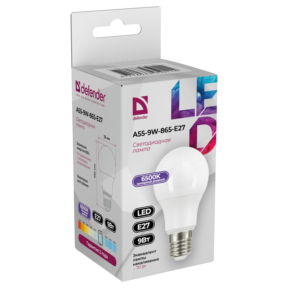 Лампа светодиодная DEFENDER A55 9Вт E27 6500К груша холодный дневной (10/100)
