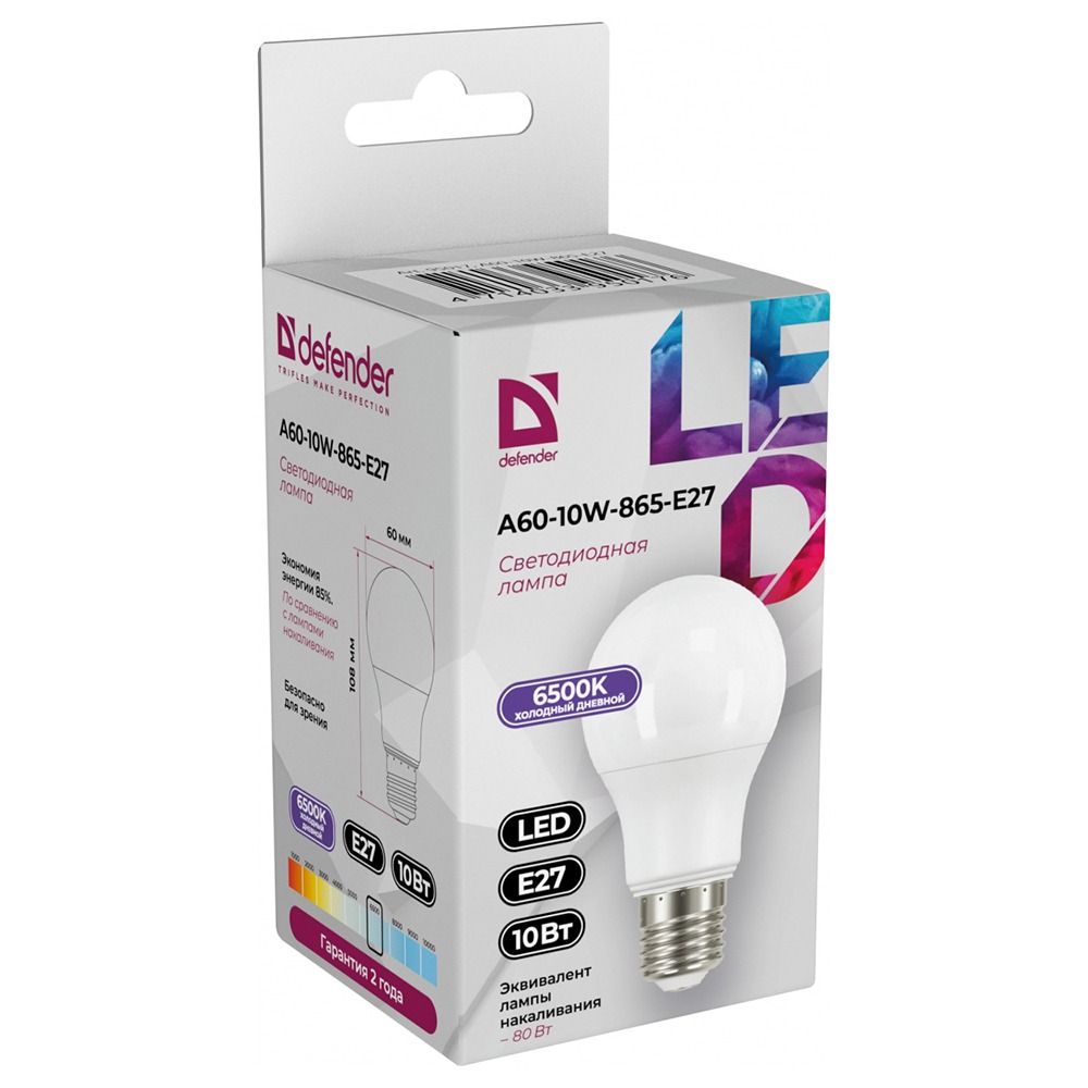 Лампа светодиодная DEFENDER A60 10Вт E27 6500К груша холодный дневной (10/100)