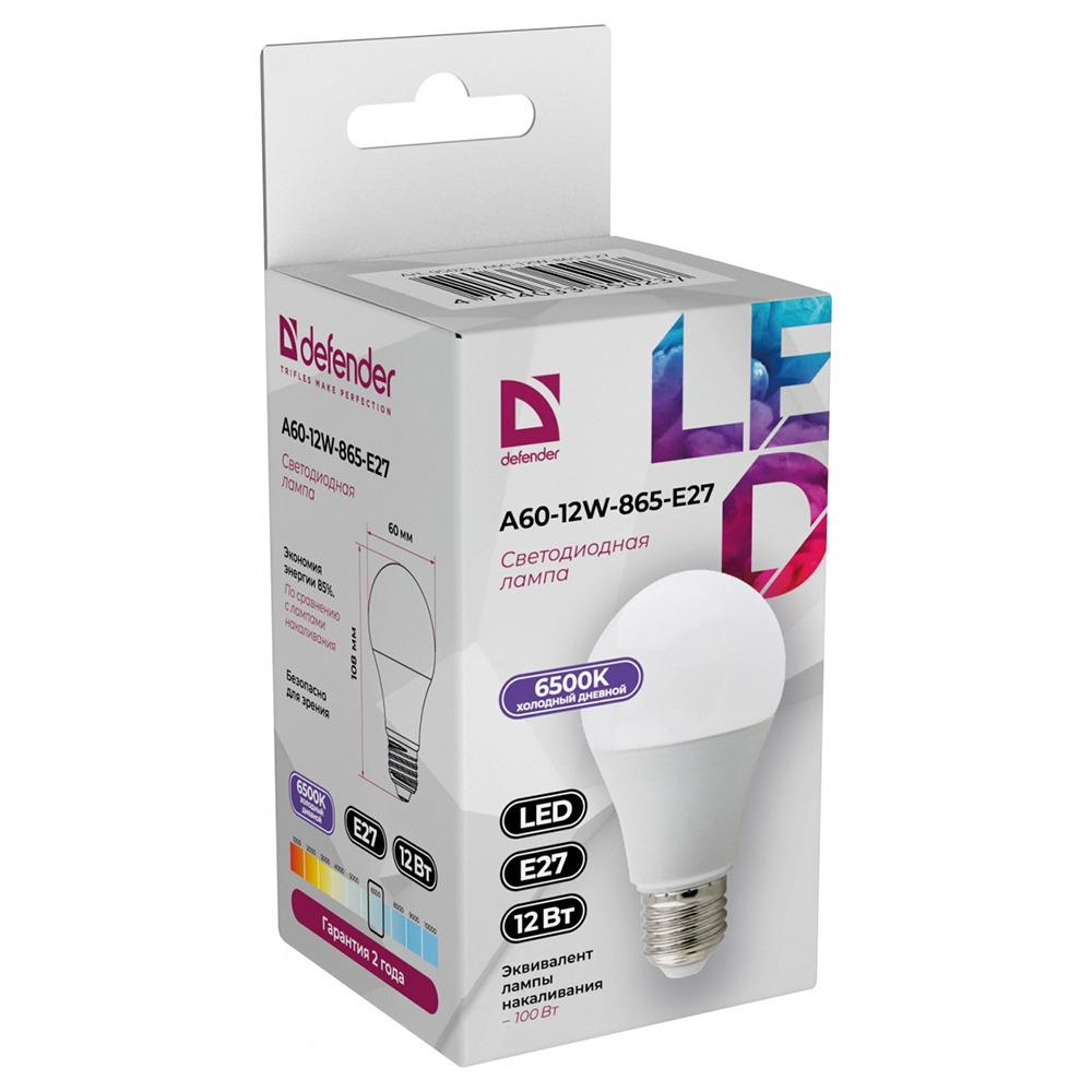 Лампа светодиодная DEFENDER A60 12Вт E27 6500К груша холодный дневной (10/100)