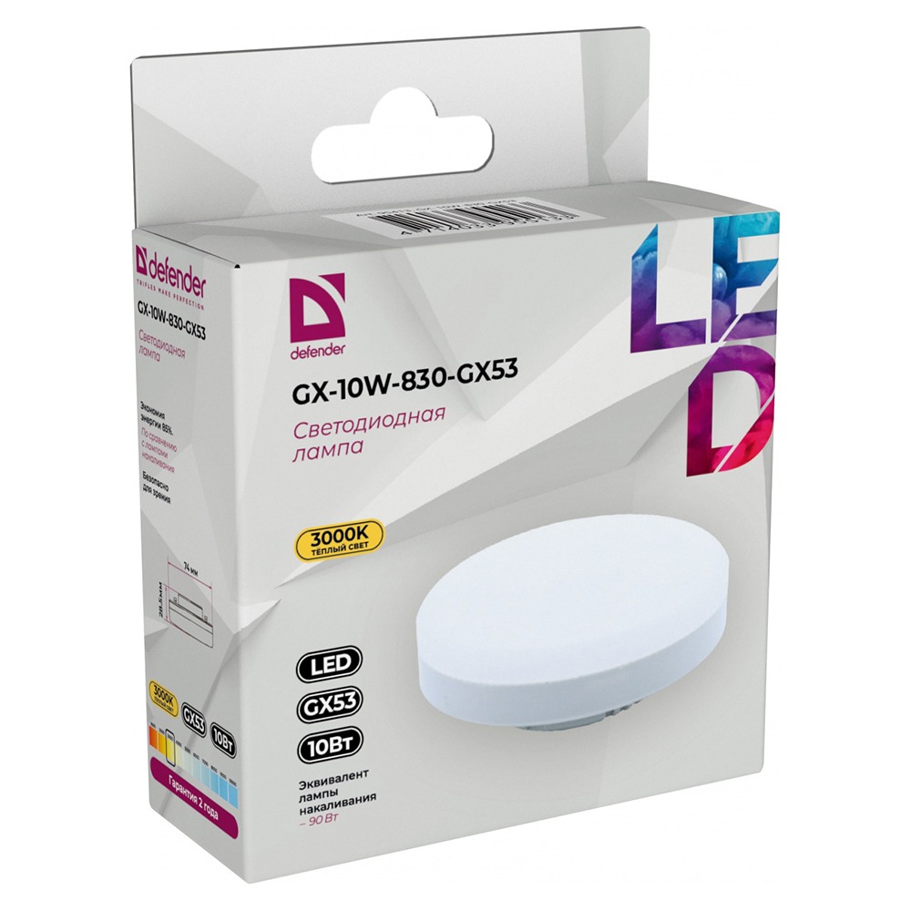 Лампа светодиодная DEFENDER GX 10Вт GX53 3000К таблетка теплый белый (10/100)