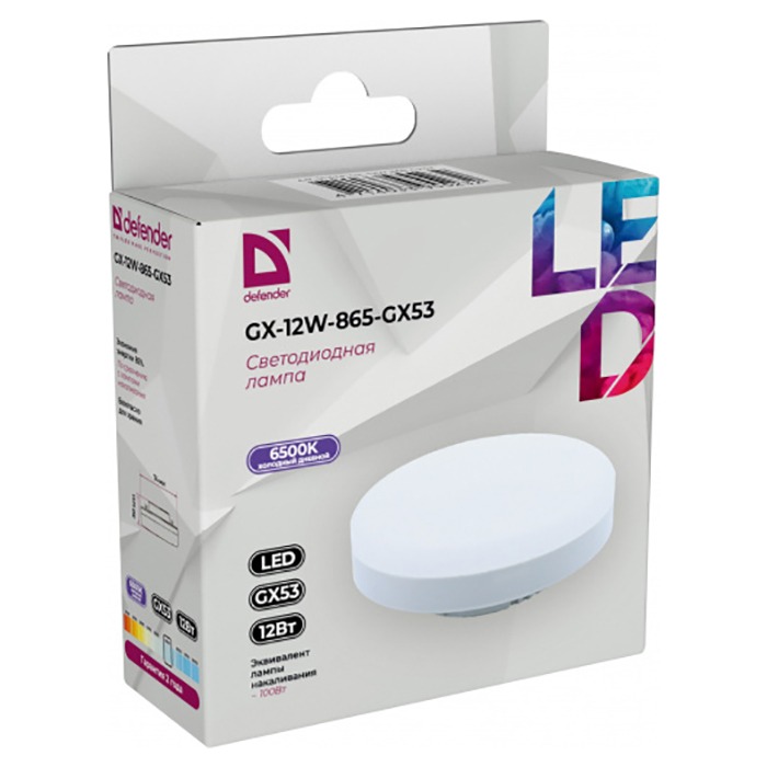 Лампа светодиодная DEFENDER GX 12Вт GX53 6500К таблетка холодный дневной (10/100)