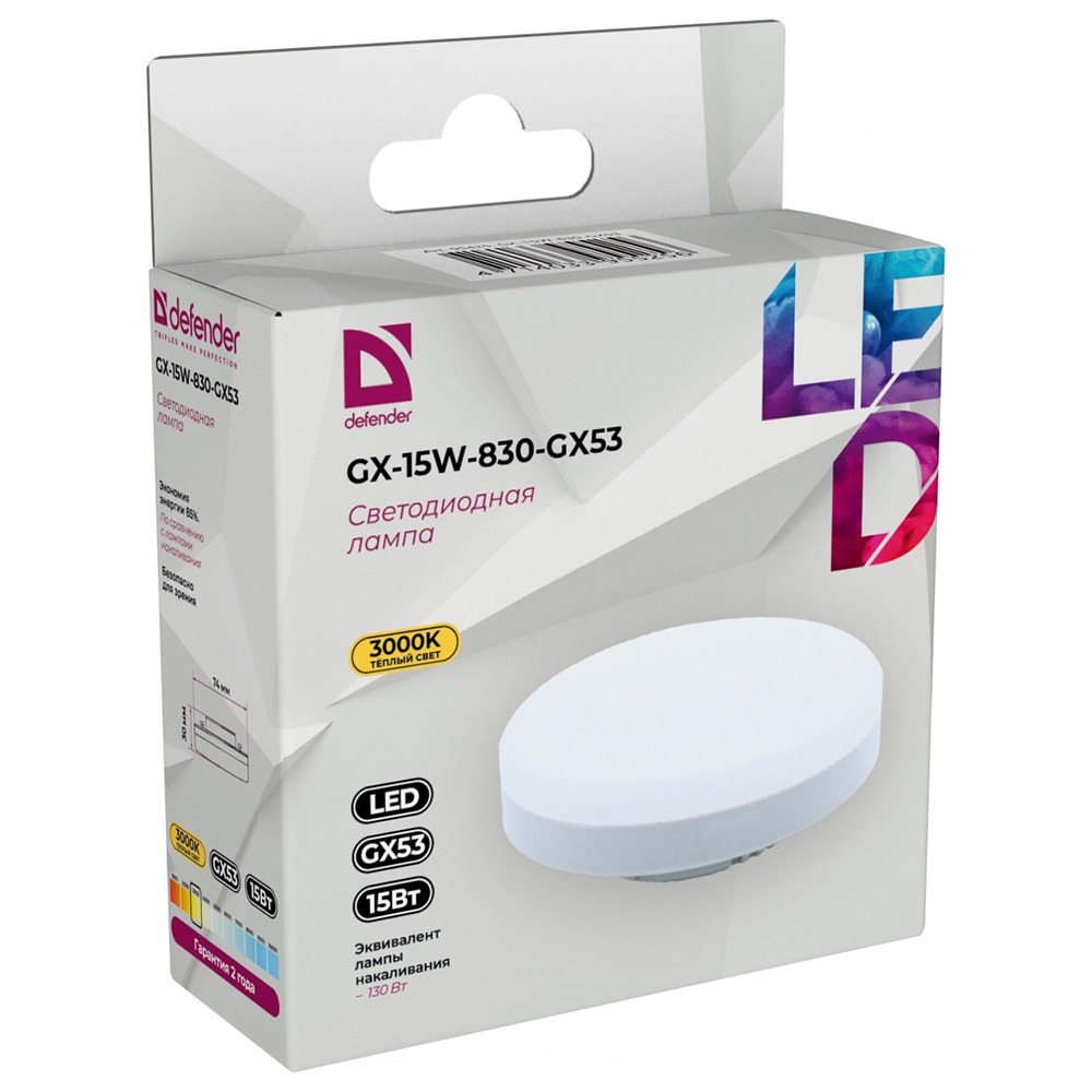 Лампа светодиодная DEFENDER GX 15Вт GX53 3000К таблетка теплый белый (10/100)