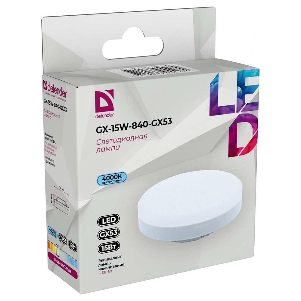 Лампа светодиодная DEFENDER GX 15Вт GX53 4000К таблетка нейтральный белый (10/100)