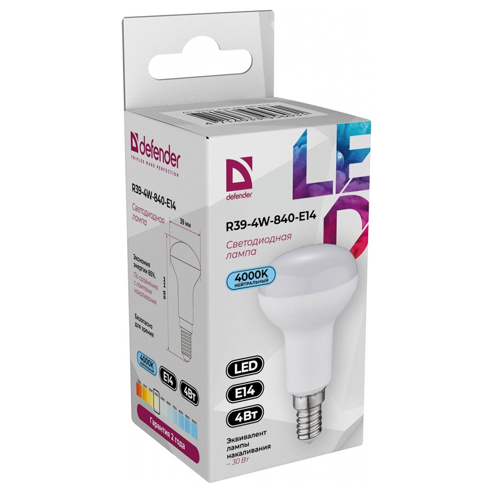 Лампа светодиодная DEFENDER R39 4Вт E14 4000К рефлектор нейтральный белый (10/100)