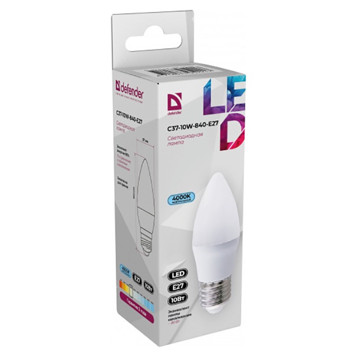 Лампа светодиодная DEFENDER C37 10Вт E27 4000К свеча нейтральный белый (10/100)