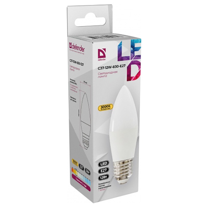 Лампа светодиодная DEFENDER C37 12Вт E27 3000К свеча теплый белый (10/100)