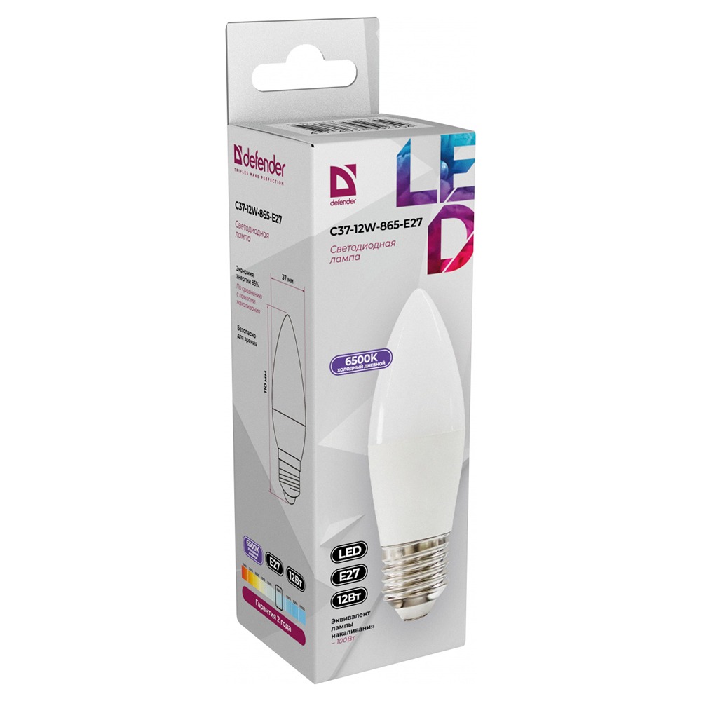 Лампа светодиодная DEFENDER C37 12Вт E27 6500К свеча холодный дневной (10/100)